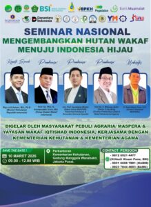 Kolaborasi Nasional Organisasi Masyarakat Indonesia dan berbagai lembaga sosial bersinergi dengan pemerintah dalam upaya nyata menghadapi tantangan perubahan iklim melalui instrumen ekonomi syariah. Masyarakat Peduli Agraria (MASPERA) bersama Yayasan Wakaf Iqtishad Indonesia menyelenggarakan Seminar Nasional bertajuk “Mengembangkan Program Hutan Wakaf Menuju Indonesia Hijau”